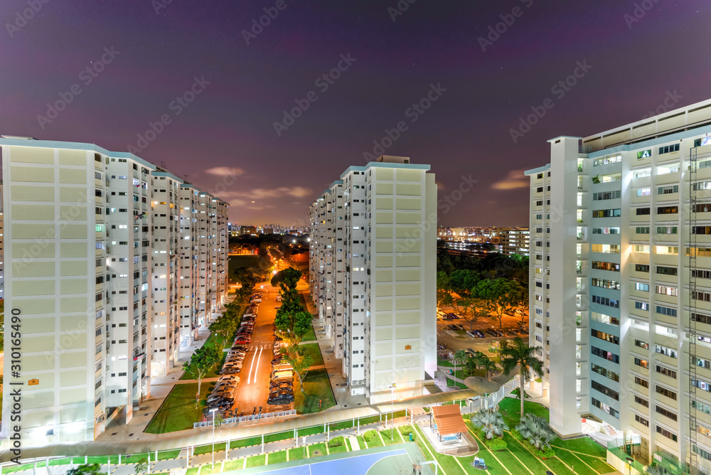 Top view Eunos neighborhood HDB complex in Singapore at evening