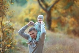 A happy father in nature enjoys performing the duties of a parent