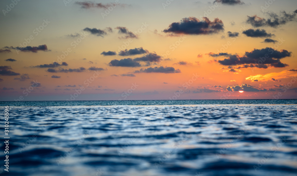 stunning and beautiful sunset on an island with a colorful horizing and the sun setting