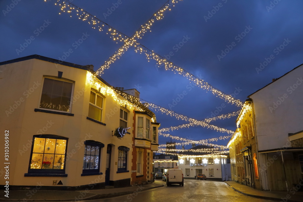 Christmas light in town of Colyton, Devon