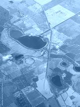 A mixture of dams and fields seen from a plane