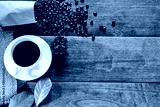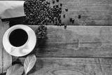 Coffee cups and roasted coffee beans