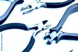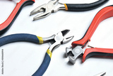Set of different tools for crimping cables. Set of pliers and wire cutters.