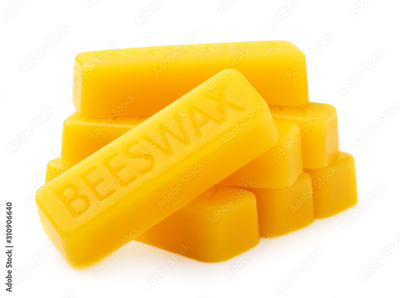 Bars of natural organic beeswax isolated on a white background. Production Ingredient for Medical and Cosmetics. The use of beeswax in apitherapy.