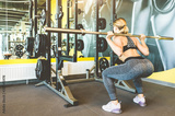Working out with barbell weights at the gym.Fitness Women exercising are lifting dumbbells. Fitness muscular body.Workout at gym.