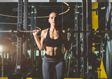 Working out with barbell weights at the gym.Fitness Women exercising are lifting dumbbells. Fitness muscular body.Workout at gym.