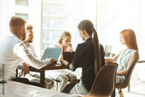 A team of young businessmen working and communicating together in an office. Corporate businessteam and manager in a meeting.