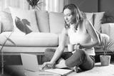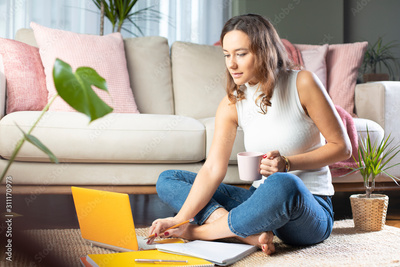 Young woman working at home