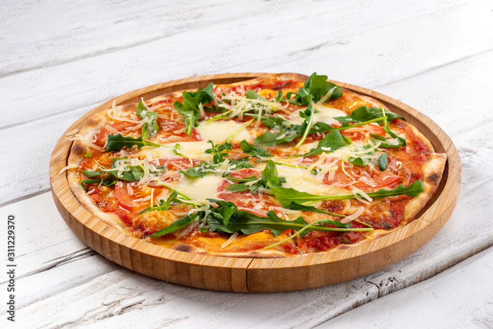 Italian pizza margherita with mozzarella tomatoes and herbs