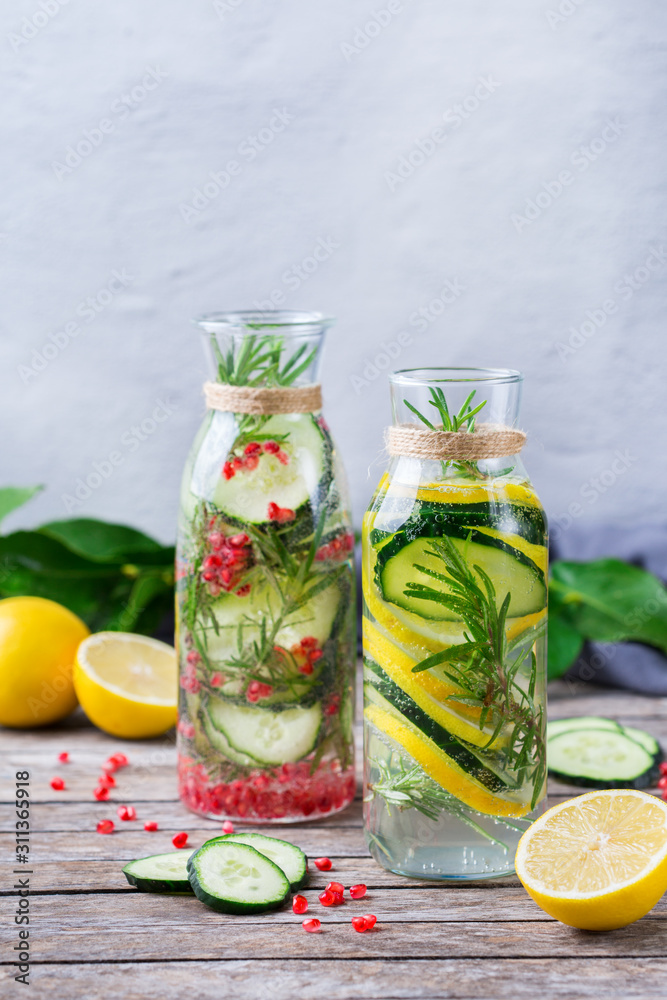 Fresh cool lemon cucumber rosemary infused water detox drink