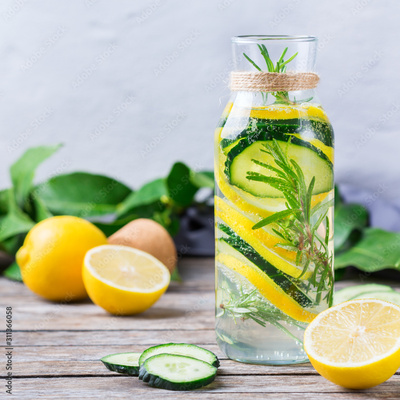 Fresh cool lemon cucumber rosemary infused water detox drink