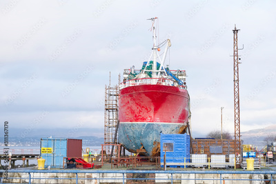 Ship Building and Crane in Port Glasgow Ferguson Shipbuilding Scaffold Dock Harbor Harbour