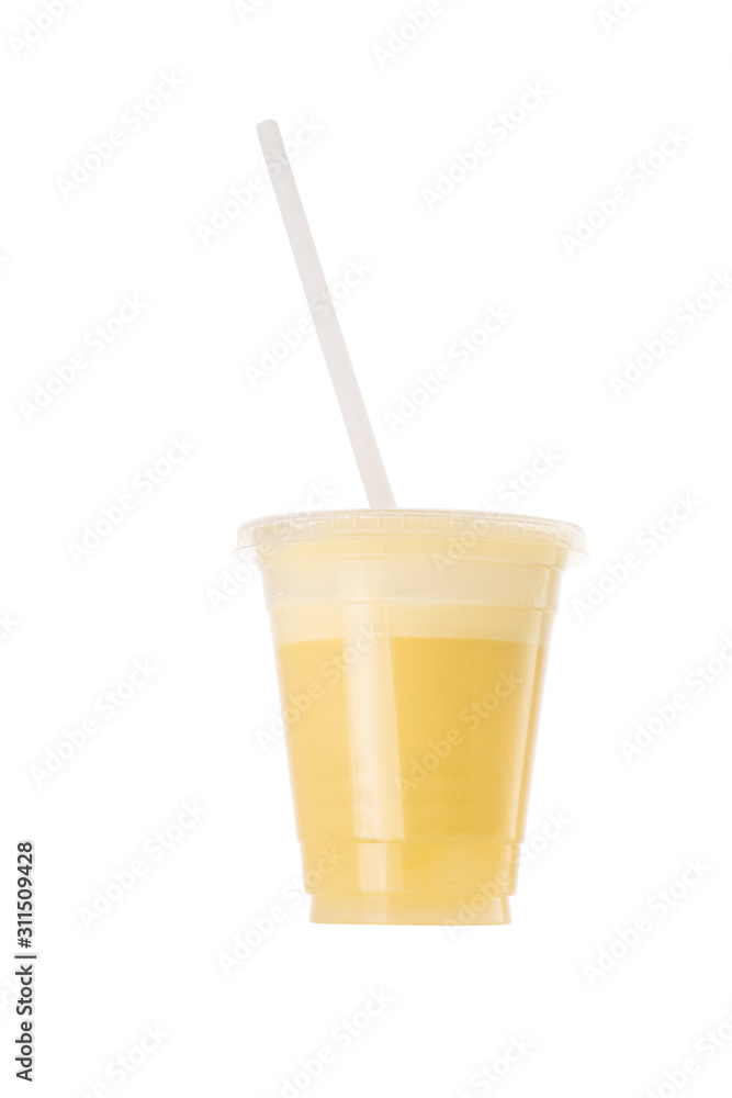 Fresh Fruit Smoothie Shake in a plastic cup and straw isolated on white background