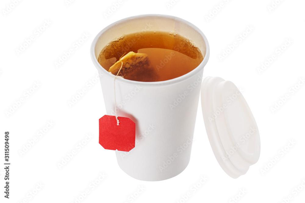Hot coffee or tea in a plastic cup isolated on white background