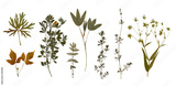 Dry pressed wild flowers and plants isolated on white background. Botanical collection