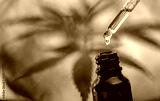 Doctors hold a bottle of medicine dropper, biomedical and ecological hemp medicine, medicinal plants, cbd oil, hemp oil, medical hemp products for medical use, including cbd hemp leaf