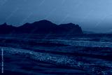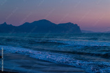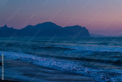 Beautiful sunset in blue clouds on the seashore