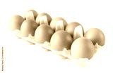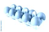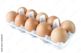 Studio shot a plastic tray with ten pastured raised chicken eggs isolate on white