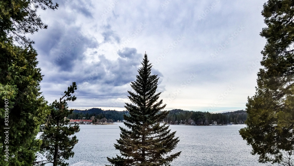 Beautiful landscape of Lake Arrowhead, California in the San Bernardino Mountains in the winter