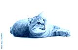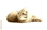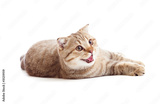 striped British kitten lying with opened mouth isolated