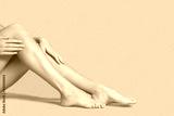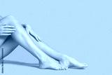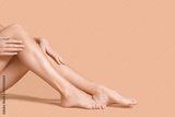 Legs of beautiful young woman on color background