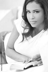 Beautiful Girl Hispanic Woman Relaxing Reading A Book