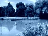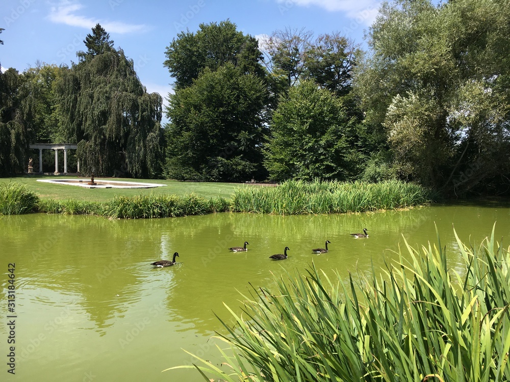 Geese on a Green Pond in Old Westbury, Long Island, New York
