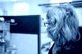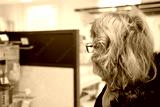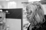 Woman seen browsing in a well-known department store during the winter sales. She is seen wearing winter clothing during a cold snap.