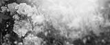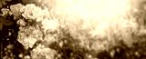 Mysterious fairy tale spring floral wide panoramic banner with fabulous blooming pink rose flowers summer garden on blurred sunny bright shiny glowing background and copy space