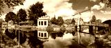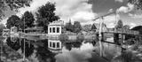 Kwakel draw bridge in the historic town Edam, Netherlands. Kwakel draw bridge is an old bridge with counter-balance construction. Calm view of the canal, waterfront houses and church tower