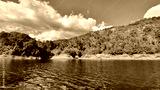 Panoramic view at of the tropical mountain at Khun Dan Prakarn Chon Dam in Nakon Nayok Thailand