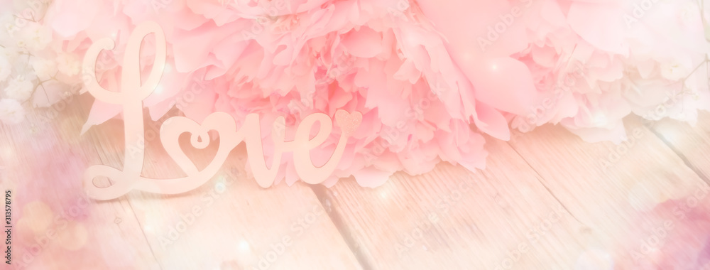 abstract background with flowers - pink peony - love concept - background banner - spring, wedding, mothers day