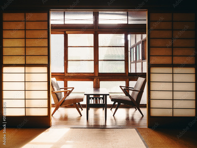 Japanese style room Interior with retro chair Vintage tone Japan house living
