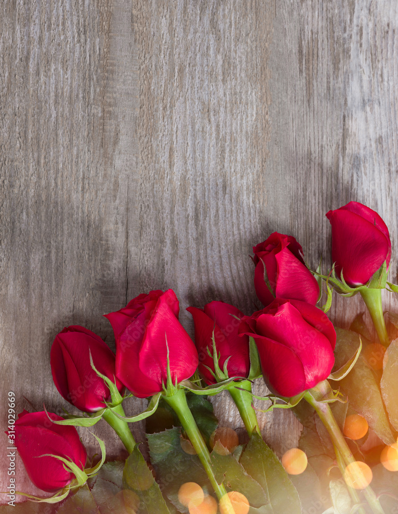 Red roses on the old table. Backgrounds for special days ( Valentine's Day, Wedding Anniversary, Mother's Day and Women's Day, birthday )