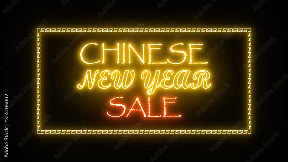 Happy Chinese new year neon letter on the black color for promotion sale and for clearance sale and for promote sale season.