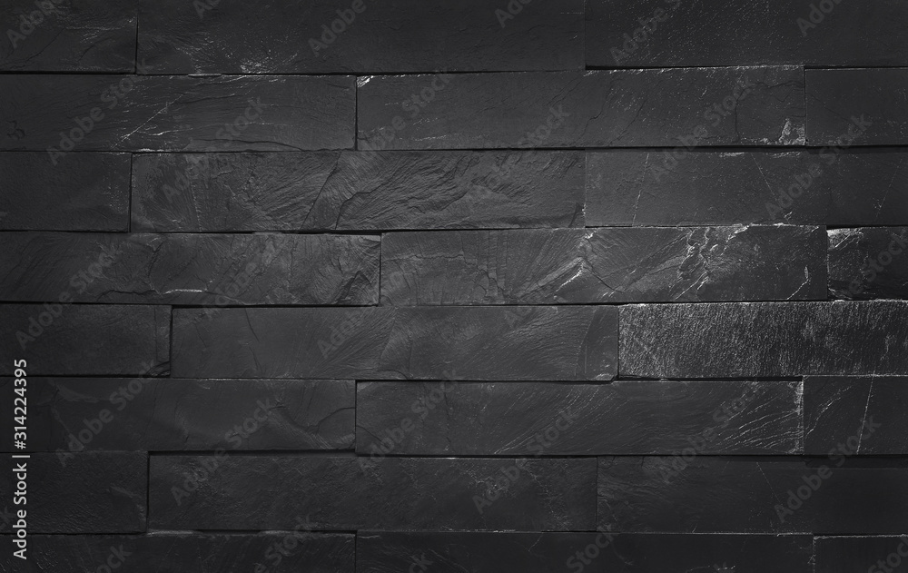 Dark grey black slate texture with high resolution, pattern of stone brick wall for background and design art work.