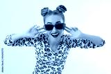 Shouting woman face. Fashion crazy female closeup in trendy clothes isolated on white background. Summer fun time and summertime accessories. Funny girl.