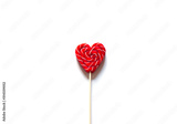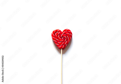 Heart shape red lollipop on the white background. Valentine's day greeting card