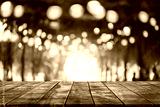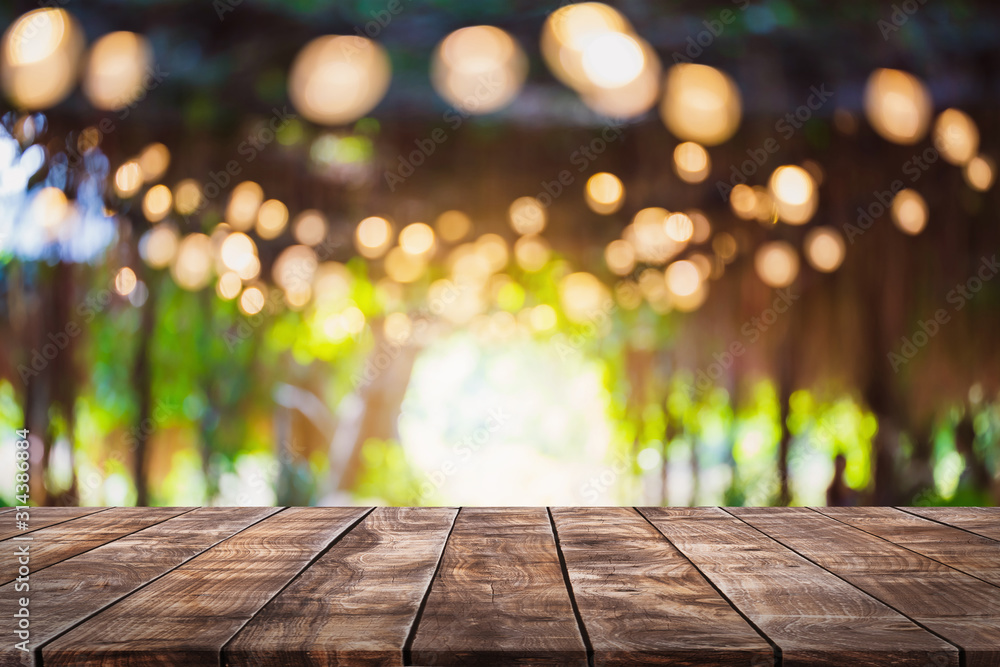 Empty wood table top and blurred coffee shop and restaurent interior background - can used for display or montage your products.