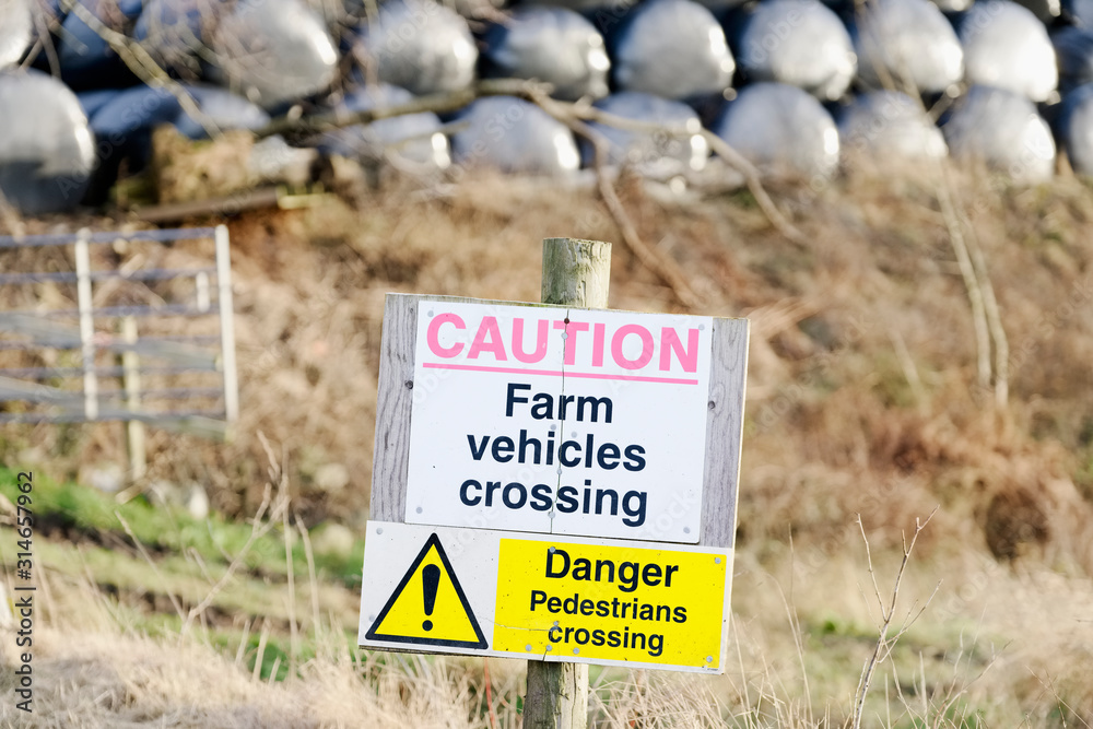 Farm vehicles and tractors crossing danger and warning sign