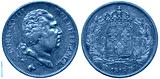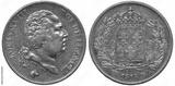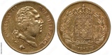 France French golden coin 40 forty francs 1818, ruler King Louis XVIII, head right, crowned shield with lilies divide denomination, sprigs flank, date below,