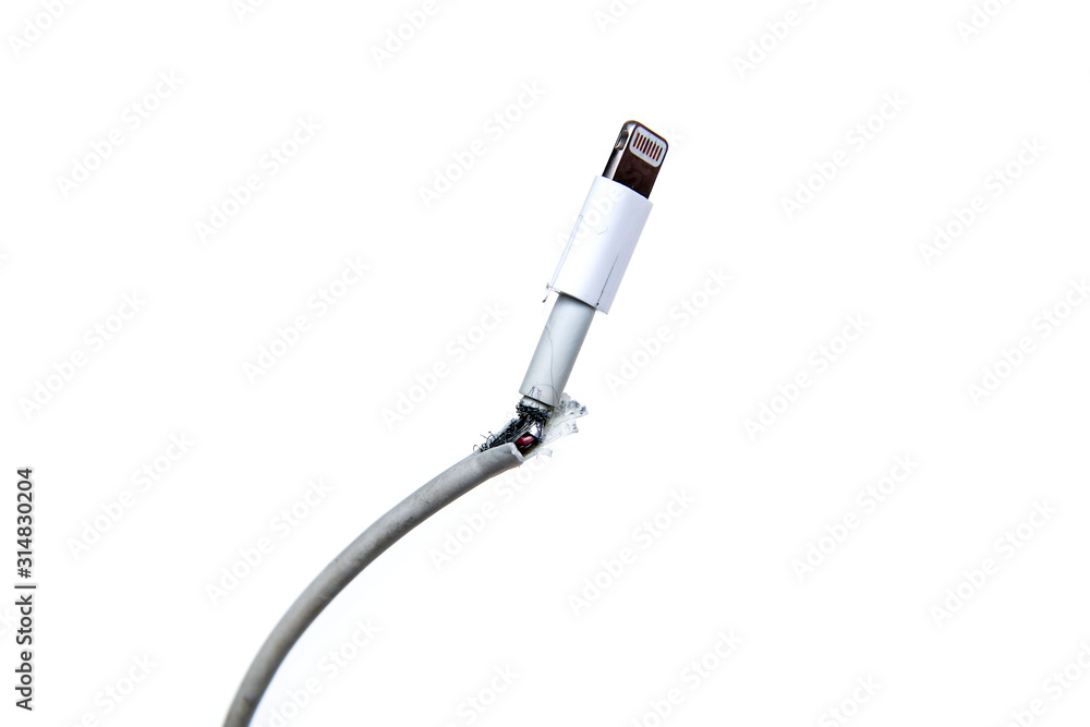 The broken and frayed cable from the charger for the smart phones. Typical problem of the users.