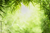 Closeup beautiful view of nature green bamboo leaf on greenery blurred background with sunlight and copy space. It is use for natural ecology summer background and fresh wallpaper concept.