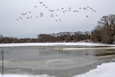 Winter Ducks in Flight