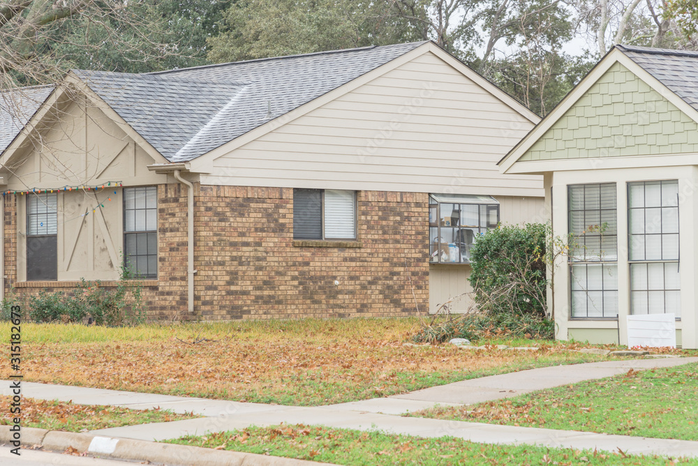 Typical residential house in snow cover near Dallas, Texas, USA