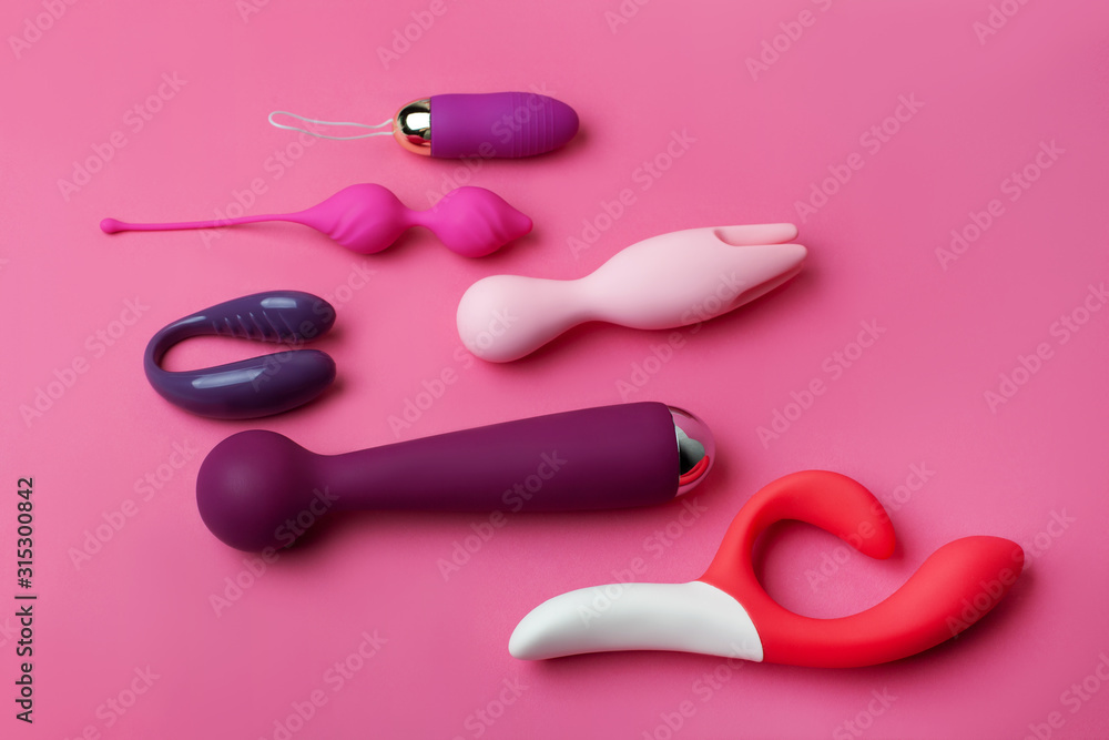 Silicone sex toys on a white background. Erotic toy for fun. Sex gadget and masturbation device..