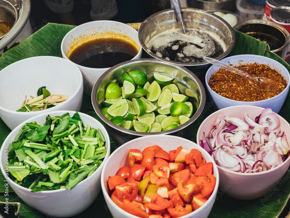 Street food Thai Spicy Salad sauce mix Thai food ingredients