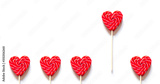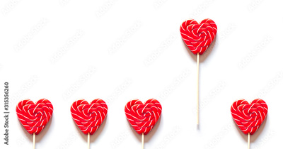 Heart shape red lollipop on the white background. Valentine's day greeting card