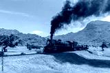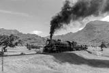 Ceres, Western Cape, South Africa. December 2019. Steam engine hauling passenger coaches to the annual excursion to the Cherry Festival on Ceres golf estate. Background of Michell's Pass.