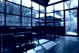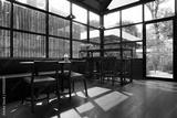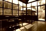 The atmosphere by the window in the morning coffee shop With the light from the sun went down on the table. orange tone vintage background
